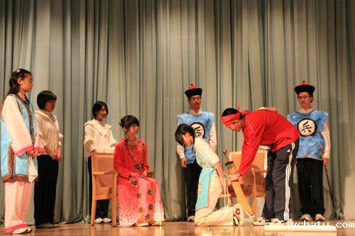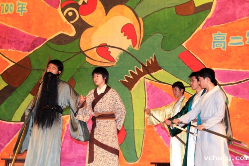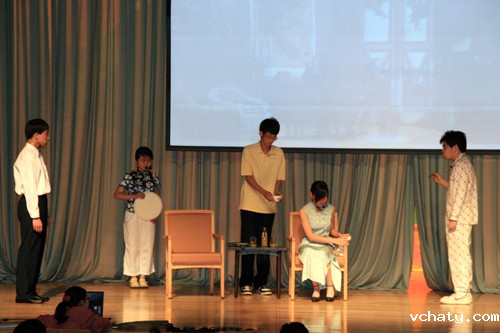5月18日、22日,高二年级组和高二语文备课组在学校礼堂举办了“2007师大附中话剧节”。此次展演是为了纪念中国话剧诞辰100周年并配合语文戏剧单元的教学。展演节目既有《雷雨》这样常演不衰的经典篇目,也有改编自《三国》、《水浒》、《简爱》、《福尔摩斯》等文学巨著的篇目,更有同学们自己的原创作品。为了鼓励同学们的创作、演出热情,分别设立了最佳表演奖、优秀剧作奖和最佳舞台设计奖。同学们扎实排练,认真准备,两场演出精彩纷呈,高潮迭起,整个活动圆满成功。通过此次展演,同学们提升了创作热情,锻炼了舞台演技,也大大增强了对戏剧这种文学样式的了解。
