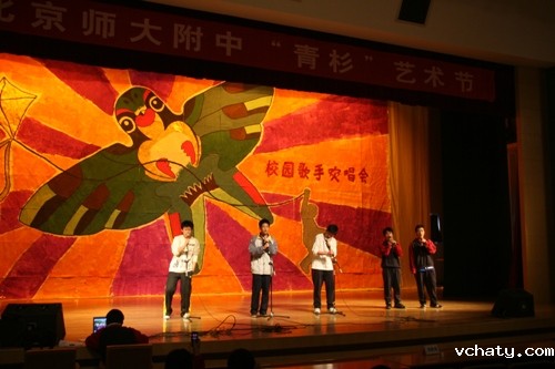 3月23日下午,我校在师大附中礼堂举办了校园歌手欢唱会。这次活动由教导处、校团委等部门联合组织,歌手来自初一、初二、高一、高二四个年级,经自愿报名、严格筛选后产生。欢唱会在一曲《奔跑》中开始,此后,台上台下的热烈气氛始终不减。歌手演唱的曲目有《不再犹豫》、《世界末日》、《江南》等,以当代流行歌曲为主。最后,所有演职人员上台,同唱一曲《真心英雄》,欢唱会在掌声中谢幕。这次盛会是本届“青杉”艺术节继“初一歌咏比赛”后推出的又一个大型校园综艺活动。此后,本届艺术节还将于近期上演“主持人大赛”、“礼仪风采展示”、“话剧展演”等重头戏。一年一度的艺术节,让学生的多种才艺充分发挥,大大丰富了我校学生的校园文化生活。