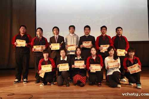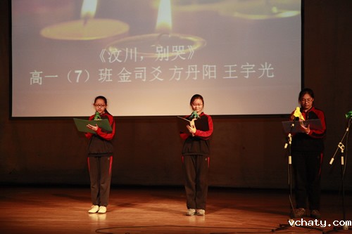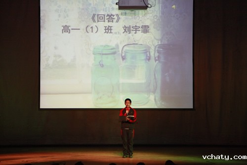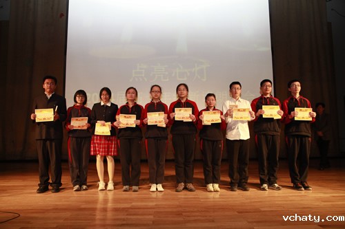 2012年3月30日星期五,高一年级全体学生在礼堂举办了“点亮心灯”主题新诗朗诵会。朗诵会根据学生选材分为三个主题:“我爱你中国”、“心灵的吟唱”、“我思故我在”。