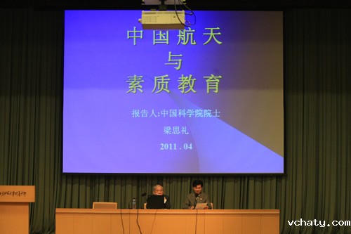 本次演讲适逢天宫一号顺利发射升空,梁思礼院士在百忙之中来到我校。他首先向我校一百一十周年校庆表达热烈祝贺,特别为我校能培养出像中国航天事业奠基人钱学森院士、中国第一枚导弹设计师梁守