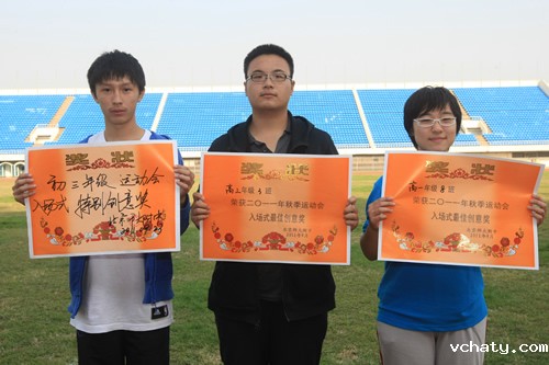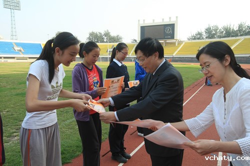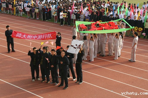 在附中110华诞来临之际,9月23日,我校在先农坛体育场举行了“迎校庆、展风采” 2011年秋季田径运动会。开幕式上各班举着精心设计的班牌班旗,精神抖擞地走近会场,在主席台前各班进行了精彩的表演,表达自己对母校的深厚情感和生日祝福。比赛场上,同学们努力拼搏,勇于超越自我,不仅锻炼和展示了自己的身体素质,更体现了更高、更快、更强的体育精神以及崇尚荣誉、互助友爱的团队精神。高三年级韩伟宸同学以21秒80的成绩再次刷新了校运动会男子200米跑纪录。