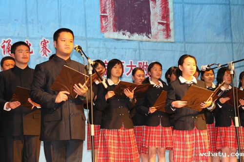 为纪念一二九运动71周年和红军长征胜利70周年,并配合诗歌单元的教学,伟德官方登录入口网址高一年级举行了“青春 ・ 火”诗歌朗诵比赛活动。比赛分成预赛和决赛两个阶段。预赛在各班进行,学生分组进行朗诵,各组推选出的代表参加班级的预赛,预赛结束后,各班前两名获得参加年级决赛的资格。决赛于12月5日举行,22位选手声情并茂地演绎了舒婷的《祖国啊,我亲爱的祖国》、柯原的《中华,中华!》、徐志摩的《再别康桥》、闻一多的《太阳吟》等优秀诗篇。比赛之后,高一年级各班代表朗诵了《长征组歌》,同学们慷慨激昂的表演,打动了在座的老师、同学,激起了大家的爱国热情。学校德育副校长王玉清、校长助理梁原草担任了本次比赛的特邀评委;北大教师、著名青年诗人江涛,北大中文系研究生赵秀铂在会上进行了点评,并朗诵了诗歌作品。