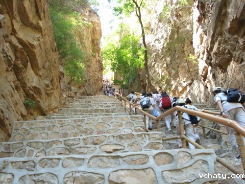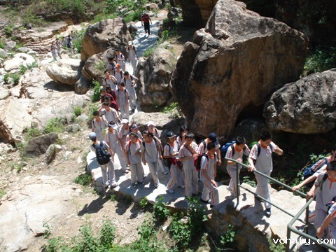 5月14日在春暖花开之际,初一年级组织学生来到了位于平谷的京东石林峡进行社会实践活动。石林峡因山峰挺立峭拔,宛若片片石林而得名。大峡谷狭而曲,陡而险,游览栈道悬于半空,行于其上,顿觉峡谷之险。来到山脚下,初一年级的学生们就沿着陡直的石级兴致勃勃地出发了。愈往上走,路就越陡,学生们头顶骄阳,气喘吁吁,大汗淋漓,腿也仿佛有千斤之重,但学生们相互搀扶着,互相鼓励着,凭借着坚韧的毅力和不畏艰难的决心,终于战胜了自己,最终走出了山谷。此次活动既锻炼了学生们的身体,又锻炼了学生们的毅力和耐力,同时使学生们明白:人生就象爬大山,只要坚定目标、脚踏实地,再加上朋友们的鼓励和帮助,相信再高的山都能登上去,再险的峰也能越过去!
