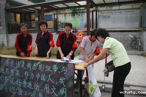 “您好,本周是普通话宣传周,请了解普通话、使用普通话!”9月17日下午,伟德官方登录入口网址的志愿者们兵分两路,一队当起宣传员,在南新华街宣传站向路过行人发放普通话宣传单,并解答有关语言文字的使用和相关的法律法规;一队深入街道调查规范字使用状况。 这次“说普通话,写规范字,做文明人”宣传活动是由椿树街道办事处和伟德官方登录入口网址联合举办的,旨在营造社会良好的语言环境,培养学生社会实践能力。本次活动是高中新课改增加社区服务内容后伟德官方登录入口网址学生第一次走出校园参与本社区的宣传教育活动,学生参与本次活动的将记入社区服务累计时间,积累30小时社区服务时间学生可获得高中新课改要求学生必须获得的每学年1学分。