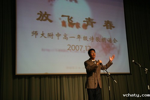 12月3日,师大附中高一年级现代诗歌朗诵会在学校百年会堂举行,学校领导、一年级师生及部分特邀代表等400余人参加了朗诵会。