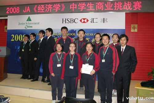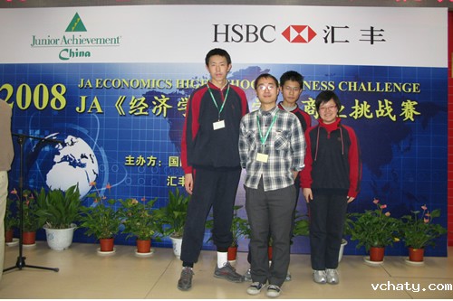 2008年12月13日,在政治组赵敏老师的带领下,我校由高一、高二共11名《企业经营模拟》选修课同学参加了由JA中国青年成就组织举办的“2008 JA《经济学》中学生商业挑战赛”,与来自十四所学校的32个小组对决。高二(1)班丁玄、高二(6)班施彦、高二(4)班金鑫、胡文谷四位同学组成的VISION队表现优异,获得第一名(The First Prize Team)。