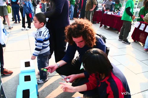 在活动中小组成员聚焦正在融化的北冰洋,以“北极圈之王”北极熊作为展示的主题。向来往的公众宣传关于气候变暖的常识。同时,我们的互动活动搞得有声有色,一片树叶就是一丝希望,来往的人群将我们准备好的叶子涂上颜色,贴在大树上,共同呼吁更多的行动来减轻温室效应。“为动物们安家”的游戏,受到了广泛的亲睐:四岁的小朋友, 大中小学生,根与芽志愿者以及国际友人都参加了这个游戏,并从中学到了关于生物多样性的知识。新鲜的创意和热情的服务使我们的展台络绎不绝,与众不同。