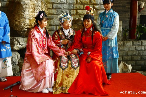 全年级的学生分为两个大组,一组先在红楼礼堂听红学专家周汝昌之子周建临先生的专题小讲座,另一组学生以班为单位在导游的引领下,参观怡红院、潇湘馆、稻香村等重点景点。在讲座之后,本年级的十位学生扮演贾母、林黛玉、贾宝玉、王熙凤等角色,为同学们演出了自排的课本情景剧片段。