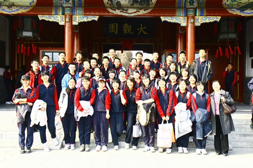 4月7日下午,风和日丽,高一年级10个班的学生在年级组长贾瑞枫老师、各班主任和年级语文老师的带领下,来到了北京大观园,开展了“走进名著做有文学修养的附中人”的系列活动。