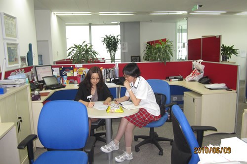 2010 年6月9日,我校JA 经济学课程又组织高一20名同学来到了NBA China参加 “职业见习日”活动。“职业见习日”是国际青年成就(中国)举行的每年一度的企业参观和见习活动。青少年学生通过跟随和观察企业员工的工作,近距离地体验和了解学校所学习的知识和技能在实际工作中的运用,并体会学习与未来职业的相关联系。上午的活动让学生们充分体会到外企人性化的办公生活,惬意而轻松,在加油声中大家观看了一场湖人对凯尔特人的季后赛,享用了一顿丰盛的午餐,下午的活动则真正是一次难忘的“职业见习”,首先是各个志愿者分组与学生讨论他们的岗位和一些日常的工作,交流完毕后他们被随机分开到四个组,进行一个以“Lenovo与NBA合作,请明星皮蓬参加,为一所打工子弟小学修建篮球场,修缮图书馆的活动”的方案设计,并进行了一个一组8分钟的演讲。最终马雨晴、陈阳、刘畅、刘烨、李泽隆同学组成的小组赢得了方案设计的第一名。这次活动让学生们收获甚多,深刻体验到职场工作的不易,团队合作、外语学习、沟通协调等能力的重要性,以及对培养高度的社会责任感、树立志愿服务精神的强烈认同。