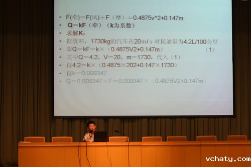 原高一10班的王宁介绍他们对汽车油耗的研究