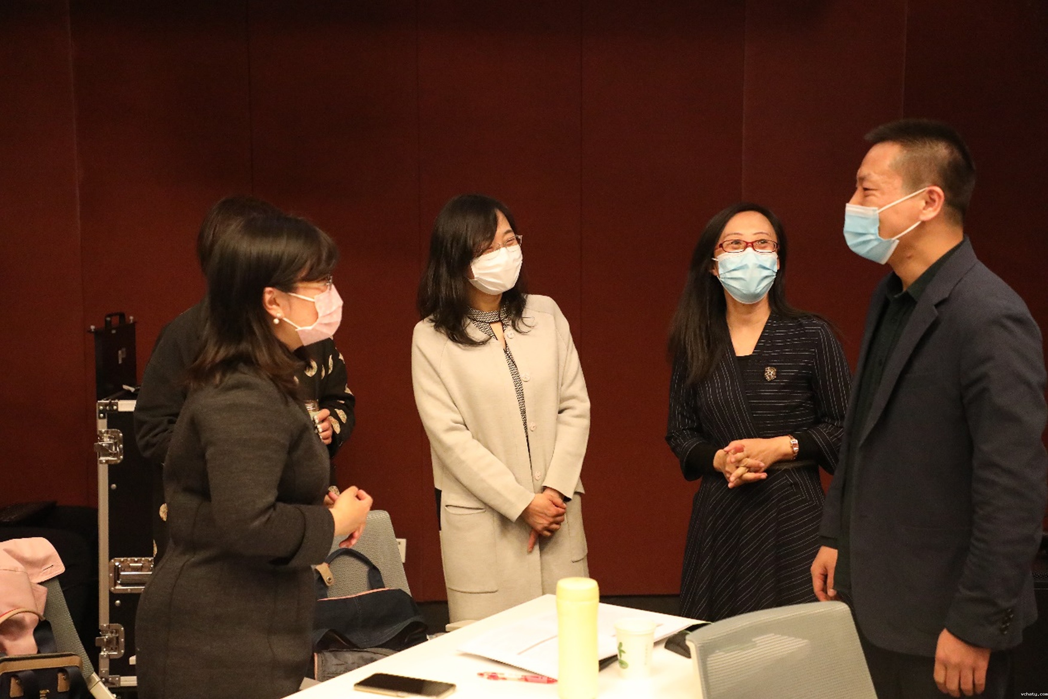 专家与我校教学处副主任张鹏老师、初中英语学科组长杜志娴老师交流