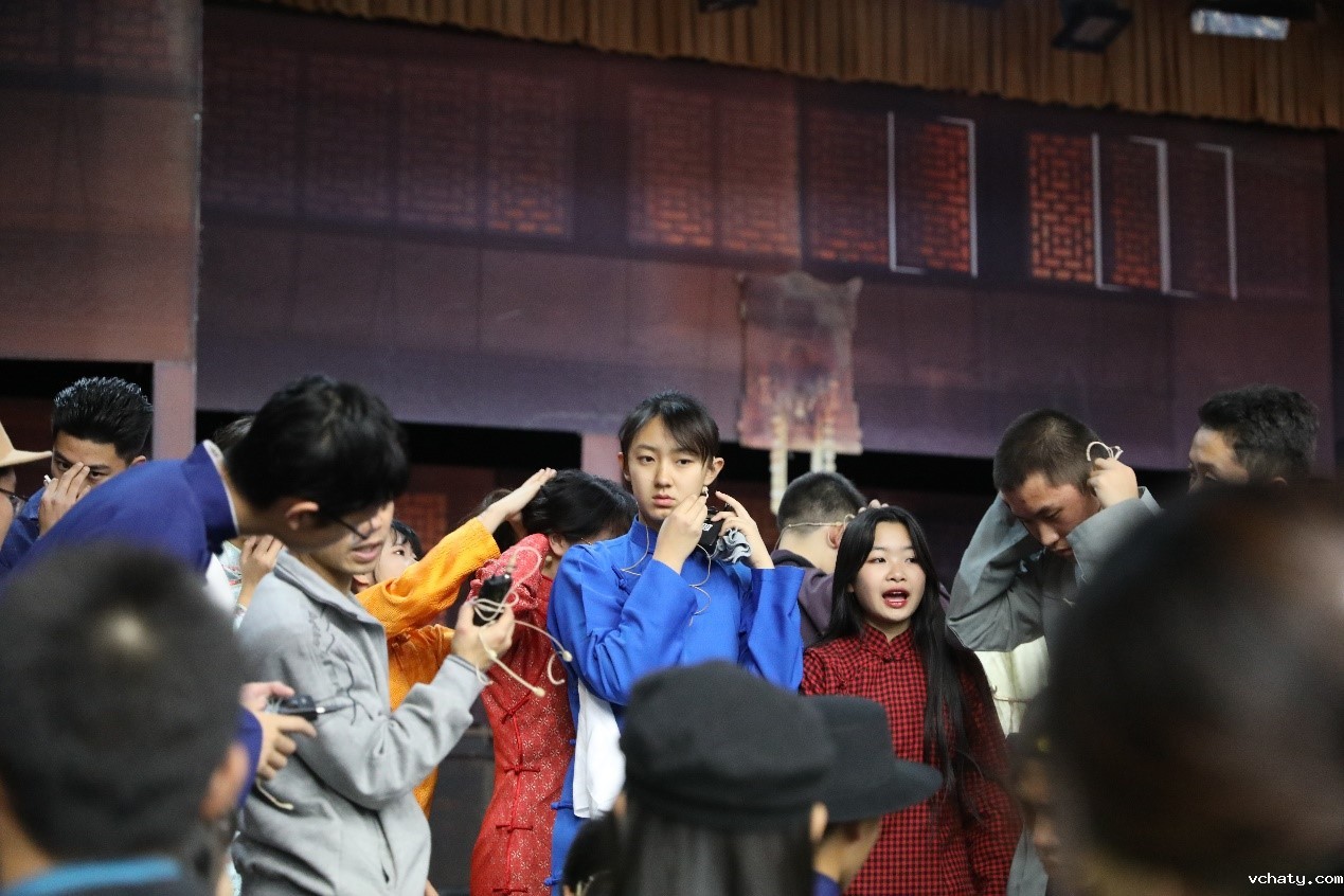 11月30日和12月1日,虽然演出时间分别在傍晚或晚上,但演员们每次还是午饭后便提早来到现场,进行舞台合成调试以及服饰、妆容的准备。而这一切都是为了更贴切的演绎出《茶馆》中或典型或平凡的人物形象!