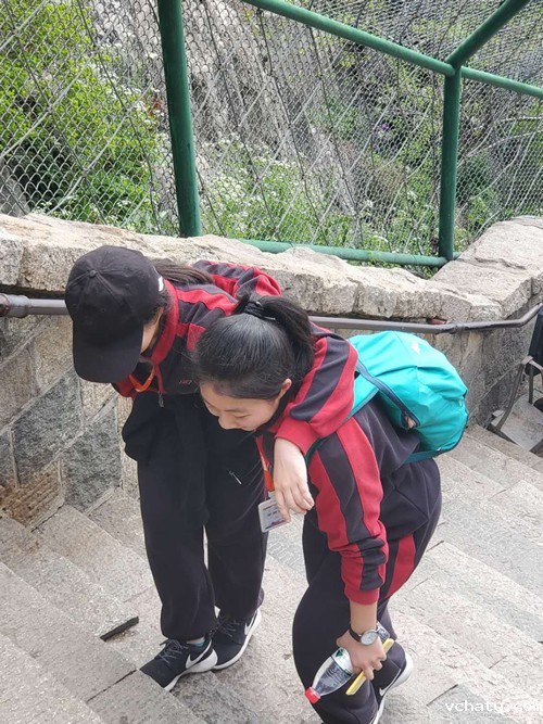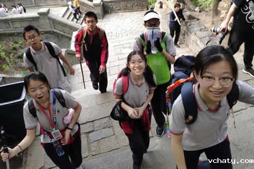 10日清早七点左右,高一全体师生的内心缓缓燃起了勇攀高峰的激情,由山脚下的红门开始登山。海拔约1545米的泰山对同学们来说是个不小的挑战。一路上,大家挥洒汗水,奋勇向前,挑战自我,突破极限, 竭尽全力发挥自己的潜能,成功登顶。在攀登过程中,“置身霄汉”“雄峙天东”等豪情万丈的摩崖石刻让人惊叹,山间的苍松翠柏和烂漫山花也令人驻足。但比这些景色更为令人印象深刻的,是同学间团结友爱的画面。其间有些同学也曾因迷惘无助而想要放弃,但是此时总有一双强有力的手,或是接过我们背上的包,或是递来一瓶矿泉水,简单而平凡的举动却蕴含着极大的能量,它们仿佛在宣告着:“我们要同甘共苦。”