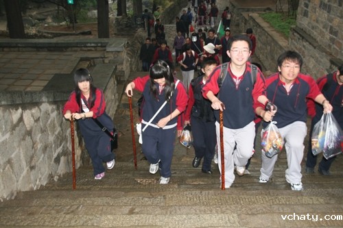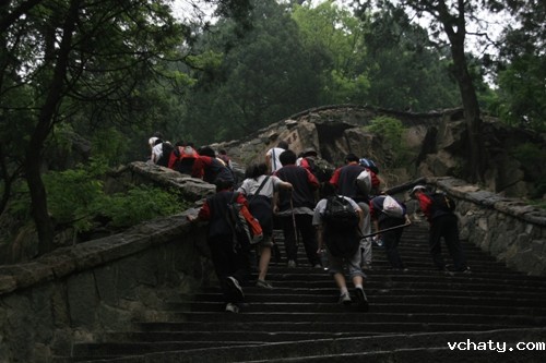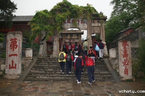 第二天早晨登泰山,泰山素有“五岳之首”、“天下第一山”之美誉,气势磅礴,拔地通天,由自然景观与人文景观融合而成。虽然天降大雾,还是掩不住同学们激动的心情。经过4小时劳累与激动的攀爬,师生们汇集于玉皇顶,喜悦激动之情溢于言表。通过自然的洗涤与文化的熏陶,同学们的意志变得更加坚强,胸怀更加博大,思想体悟更加深邃――风云变幻,泰山依旧。