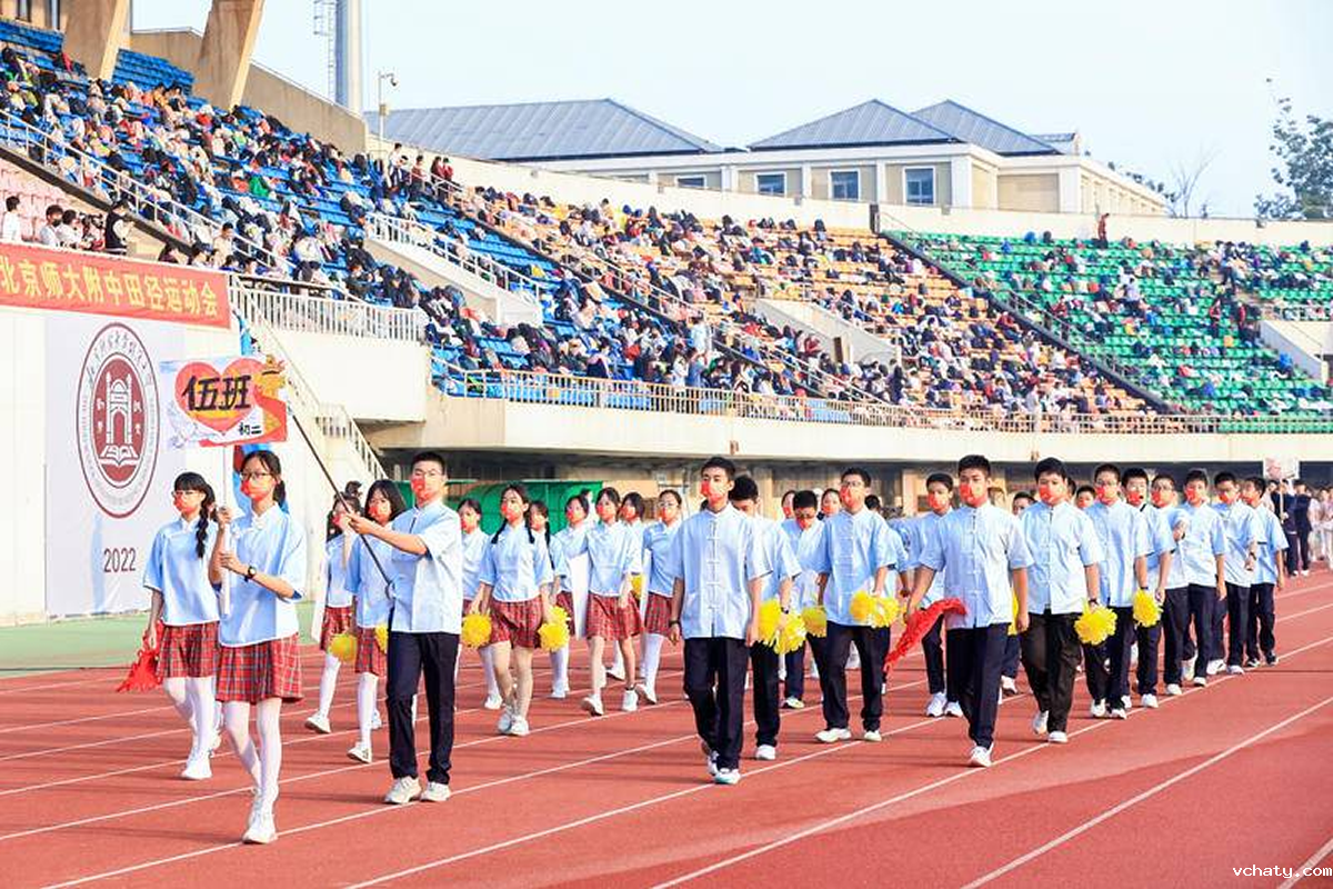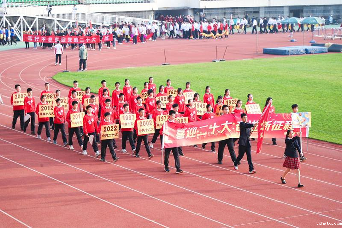 北京时间6点45分,迎着初秋的朝阳,师大附中的师生们早已准备就绪、整装待发。在激昂的音乐中,本届师大附中秋季田径运动会开幕式正式开始。98个班级方阵在旗手的带领下有序进场,他们依次通过主席台进行队列展示。为迎接党的二十大,附中学子们以独出心裁的创意回顾了党的奋斗征程,以响亮的口号表达了拼搏奋进的决心,展现了附中人昂扬的精神面貌。
