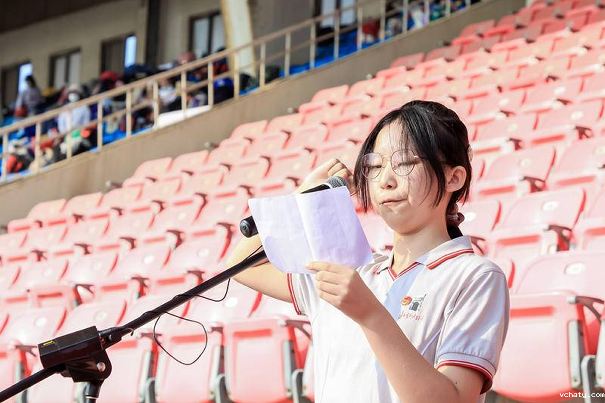 所有方队进场完毕,体育场内奏响国歌,全场肃立,目视国旗缓缓升起。庄严的升旗仪式结束后,王莉萍校长致开幕辞。在致辞中王校长回顾了师大附中深厚的体育教育传统,附中师生在过去各种体育竞赛中取得的优异成绩,以及年初参加冬奥开幕式演出的难忘经历。王校长在讲话中向同学们强调党的二十大是全党全国各族人民迈上全面建设社会主义现代化国家新征程、向第二个百年奋斗目标进军的关键时刻召开的一次十分重要的大会,她勉励附中学子强健体魄,磨炼自身本领,大力弘扬中华体育精神和北京冬奥精神,在运动会中赛出精神,赛出友谊。随后高三(1)班郑祺同学、总裁判长胡建东老师、高三(4)班丁傲霜同学分别代表全体运动员、裁判员、志愿者发言宣誓。