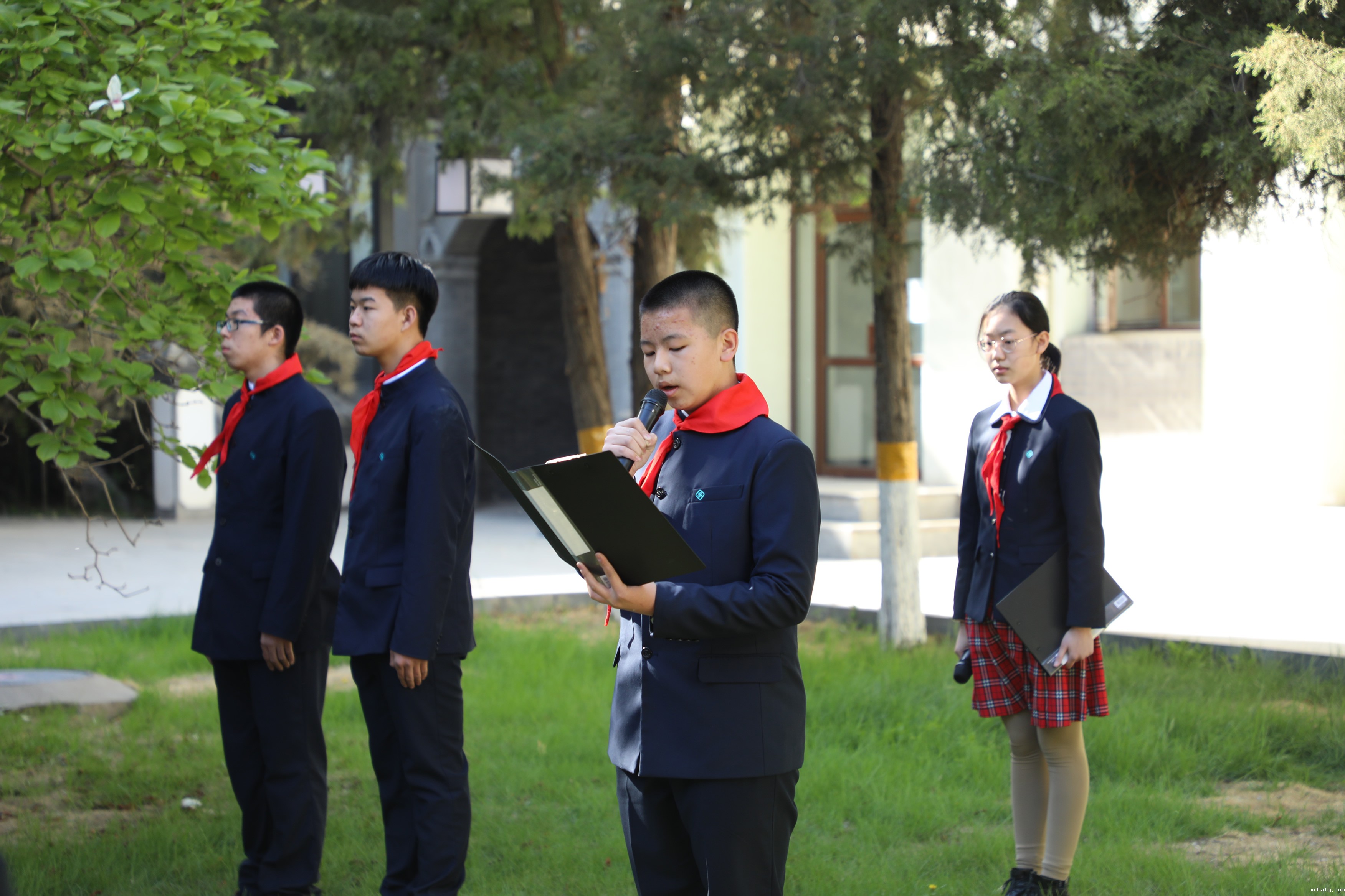现场活动紧凑有序,全体师生代表共唱国歌、队歌之后,由学生代表介绍赵世炎烈士生平事迹,全体师生代表向赵世炎烈士像行鞠躬礼、重温入队誓词、朗诵《可爱的中国(节选)》、向烈士献花。