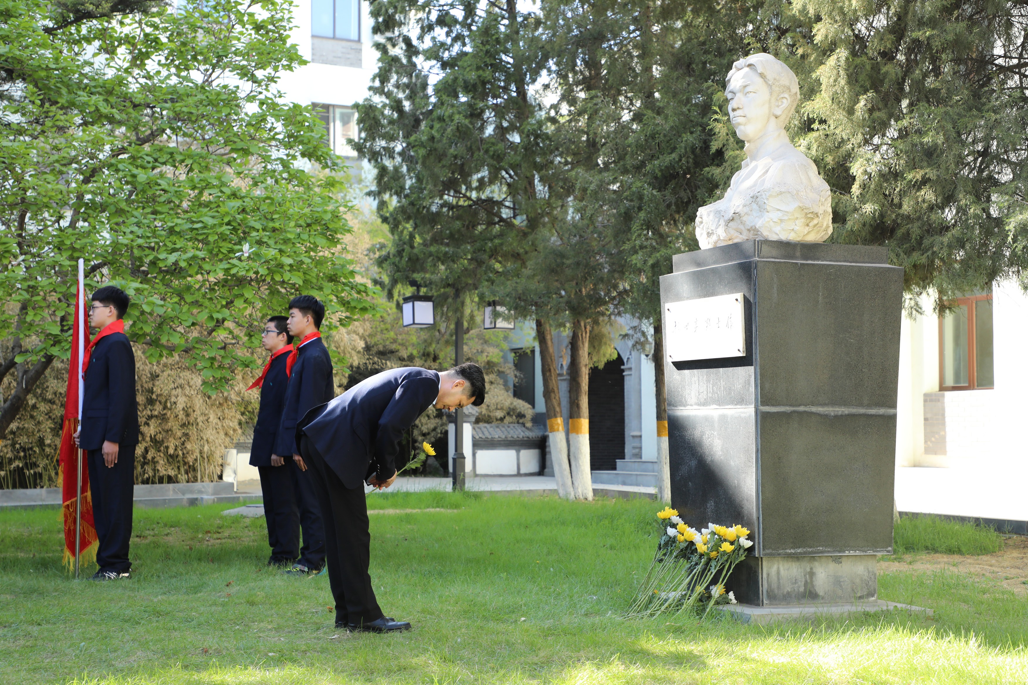 2021年4月13日是中国共产党早期杰出的无产阶级革命家、卓越的马克思主义理论传播者、著名的工人运动领袖、中国共产党的创始人之一、我校校友赵世炎烈士诞辰120周年纪念日。为表达对赵世炎烈士的敬仰和纪念,4月13日下午,我校师生在赵世炎烈士像前举行纪念活动。