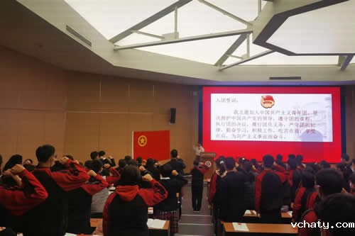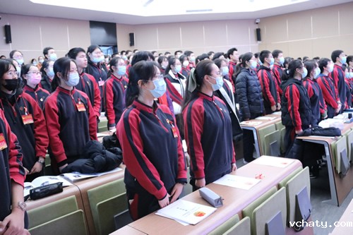 全体团员代表在上一届团委副书记高三9支部刘雨霏的带领下,再一次重温入团誓言。