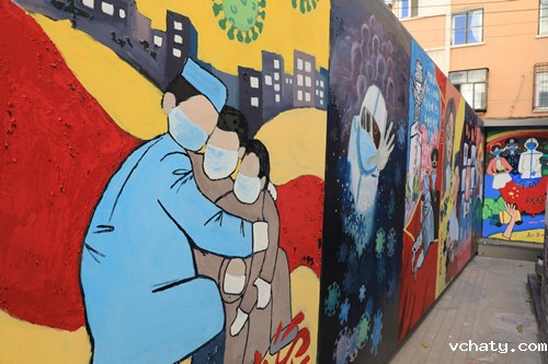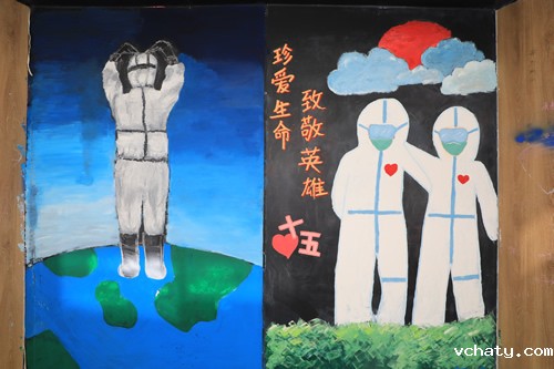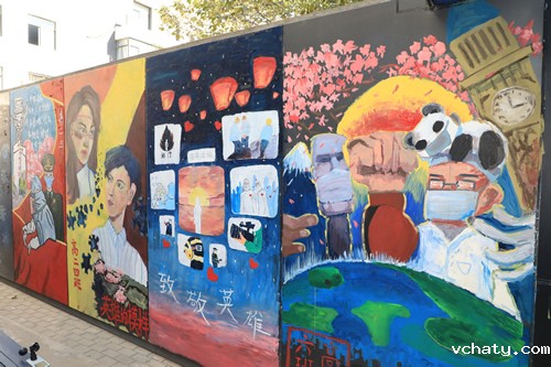 为大力弘扬伟大的抗疫精神,伟德官方登录入口网址团委组织全体东校区42个班级和美术组带领的艺术社团进行了一场以“珍爱生命,致敬英雄”为主题的涂鸦墙大赛。此次活动历时5周,以少先队和团支部为单位共绘制出50块、全长100余米的墙面。