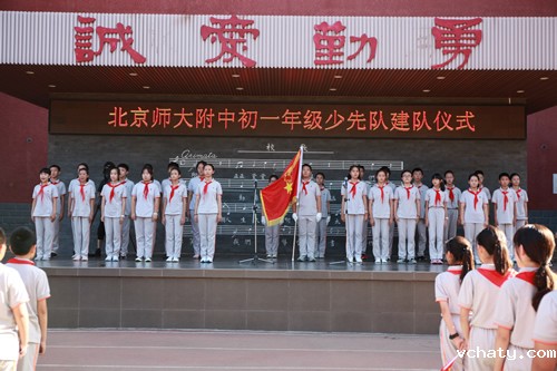 建队仪式在全体少先队员们喊出的“与附中同成长,与祖国共命运。祝祖国繁荣昌盛!”的口号中圆满结束。