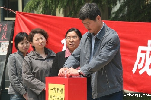 5月14日中午11:30,我校工会组织了“众志成城、抗击灾难”募捐活动。广大教职工积极为四川地震灾区捐款,奉献爱心,在短短两个小时的时间里,共募集30289元。这笔捐款将由学校工会送到宣武区教育工会。另外,还有部分教职工通过其他渠道和方式为灾区捐款。