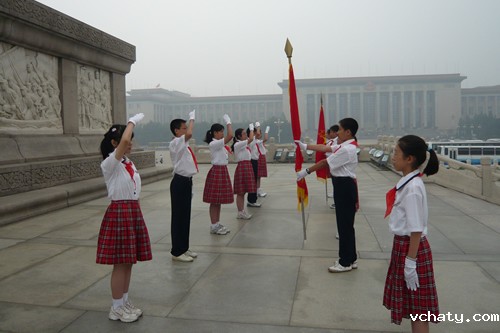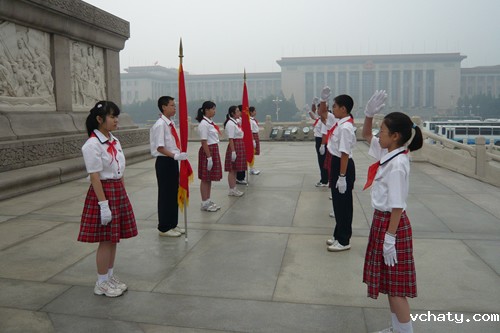 2008年6月25日,我校18名少先队员在初一年级组长那绍钧老师、校团委书记张帅老师的带领下来到天安门广场人民英雄纪念碑前站“首都少年先锋岗”。上午9点,站岗仪式正式开始。少先队员们身穿伟德官方登录入口网址校服,佩戴鲜艳的红领巾,以每次二组、每组三人的形式,守护在英雄纪念碑前。参加站岗的队员动作规范,表情肃穆,换岗时动作统一,队列整齐,充分展示了我校学生的良好精神风貌。