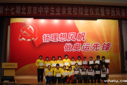 11月2日,第十七期北京市中学生业余党校结业仪式在附中百年会堂举行。团市委书记刘剑,团市委副书记王粤等相关领导和宣武区团区委书记王干,区教工委副书记吴君楚及我校刘沪校长出席大会。