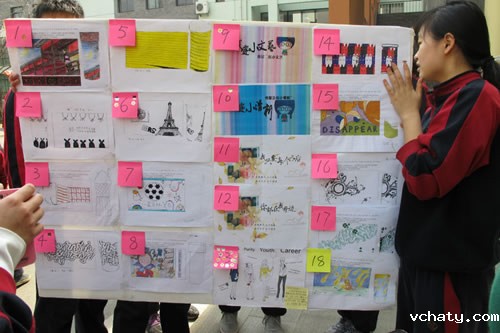 周三DIY随身杯大赛,学生会的同学们准备好板子,贴好了事先收上来的35张设计作品。DIY随身杯大赛是组织同学们为杯子设计花纹,发挥创意,同学们的作品十分具有设计感,让大家看到了附中学子优秀的绘画功底。