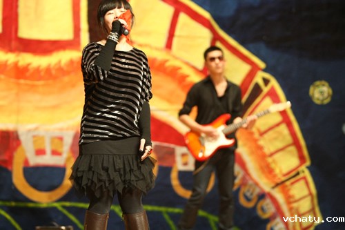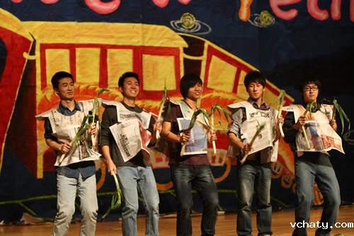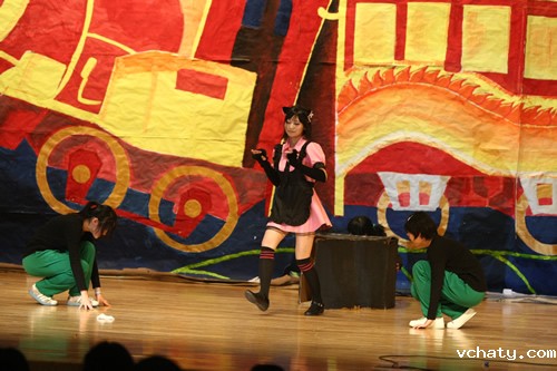 附中学生会的同学利用课余时间绘制了主题为“星空”的幕布,将畿米的漫画星空与中国传统的金龙结合在一起,绘成美轮美奂的背景。