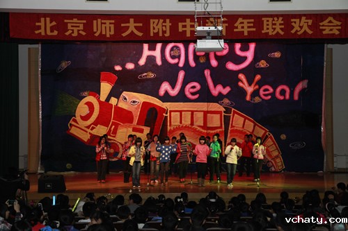 2011年12月30日、31日,附中校园内一片欢歌笑语,各年级分别在“伟徳国际BV会堂”举行了新年联欢会。校领导在百忙之中来到礼堂向同学们致以亲切的问候,刘沪校长为大家做了热情洋溢的新年致辞。