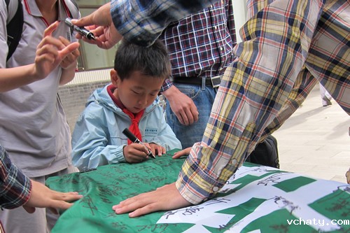 我校骐骥根与芽小组成员在活动前进行了充分的宣传。组员首先进班宣讲,之后将同学们的感想都记录在一张张可爱的月熊剪纸上,并制作了“月亮熊,请不要哭泣”的知识展板;活动前一天,在社长常壮壮的带领下,根与芽号召全校同学老师签名抵制熊胆制品,让关爱月熊的呼声传遍了学校每个角落,也让所有人对亚洲动物基金工作人员的到来充满了期待。