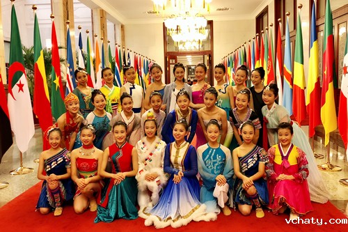 当日,天安门广场被鲜花装点,中非合作论坛成员国国旗、非洲联盟会旗和印有中非合作论坛会徽的旗帜迎风飘扬。人民大会堂灯火通明,欢乐祥和,在通往宴会厅沿途,我校舞蹈团同学身着民族服饰,载歌载舞,以最热情的舞蹈迎接峰会领导人,欢迎远道而来的贵宾。